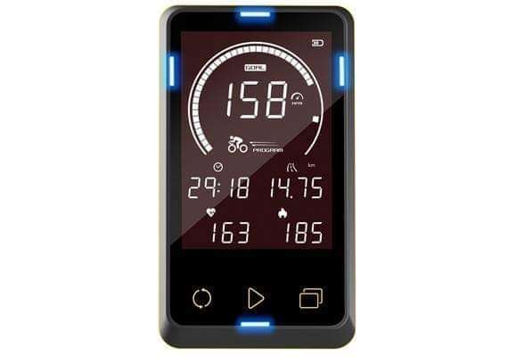 - Pantalla LCD de 5 ″: tiempo, distancia, calorías, frecuencia cardíaca, RPM, velocidad, batería