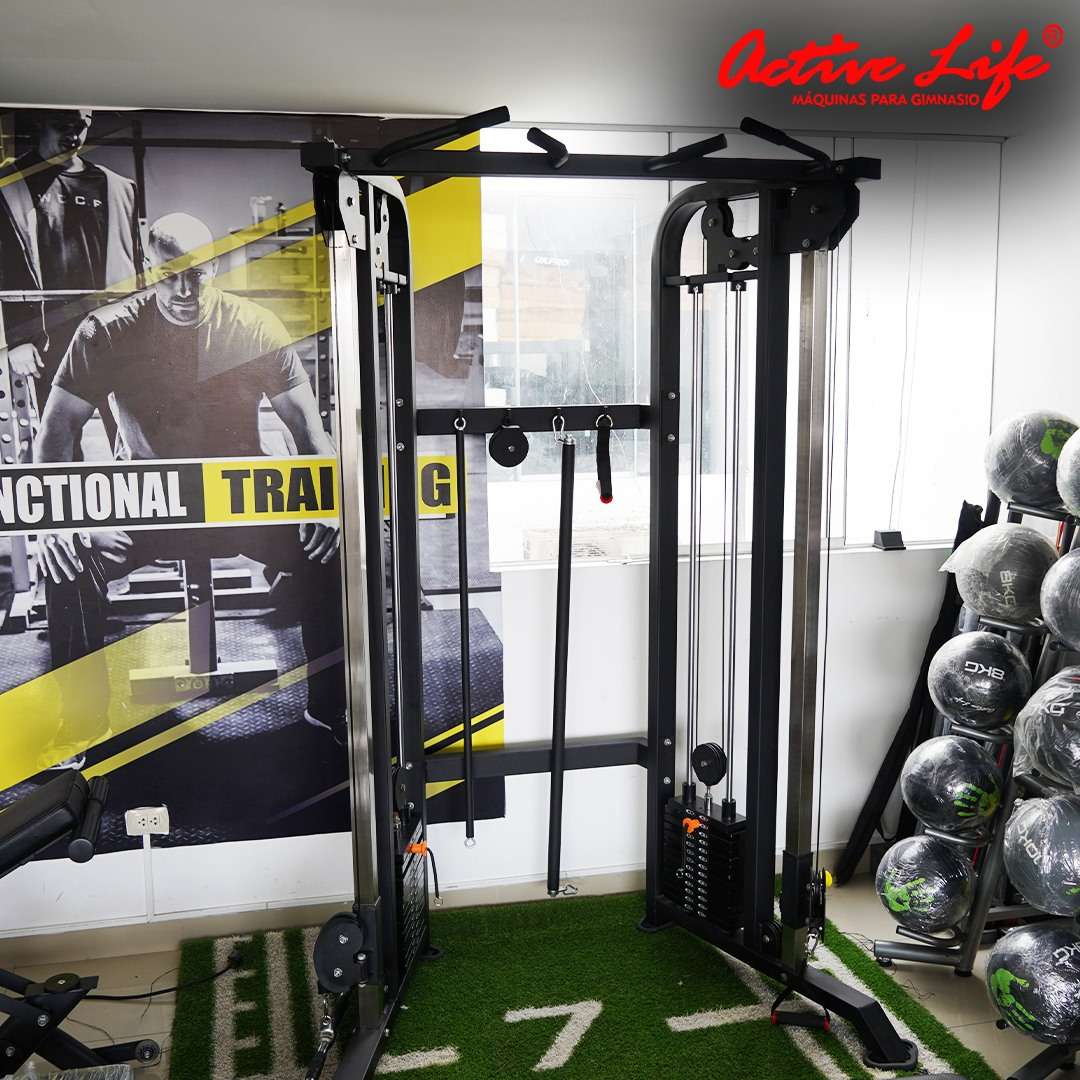 posee doble polea ajustable, ideal para gimnasios, estudios fitness y también