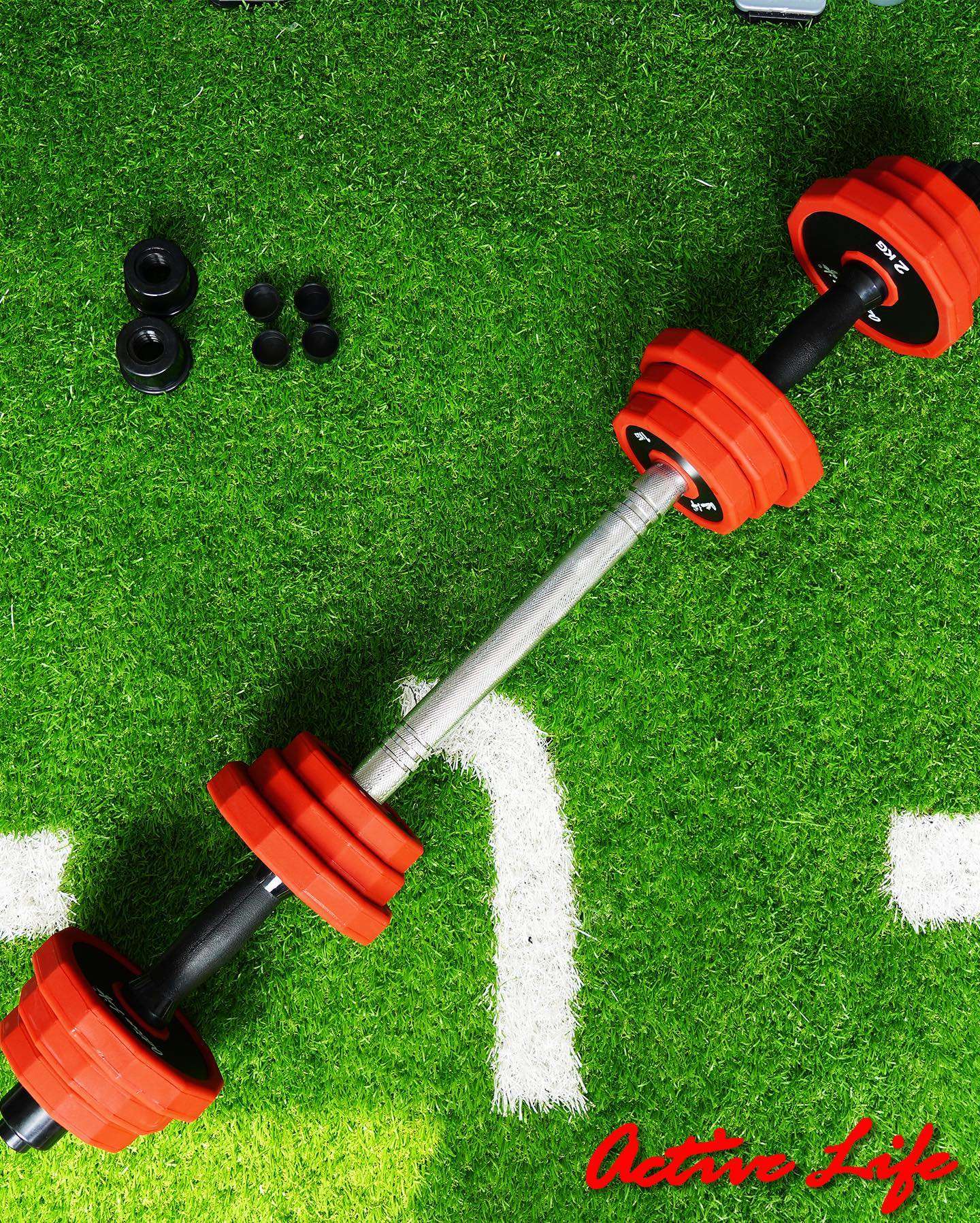 2 barras para mancuerna en acero con 2 seguros cada una. + Acople barra