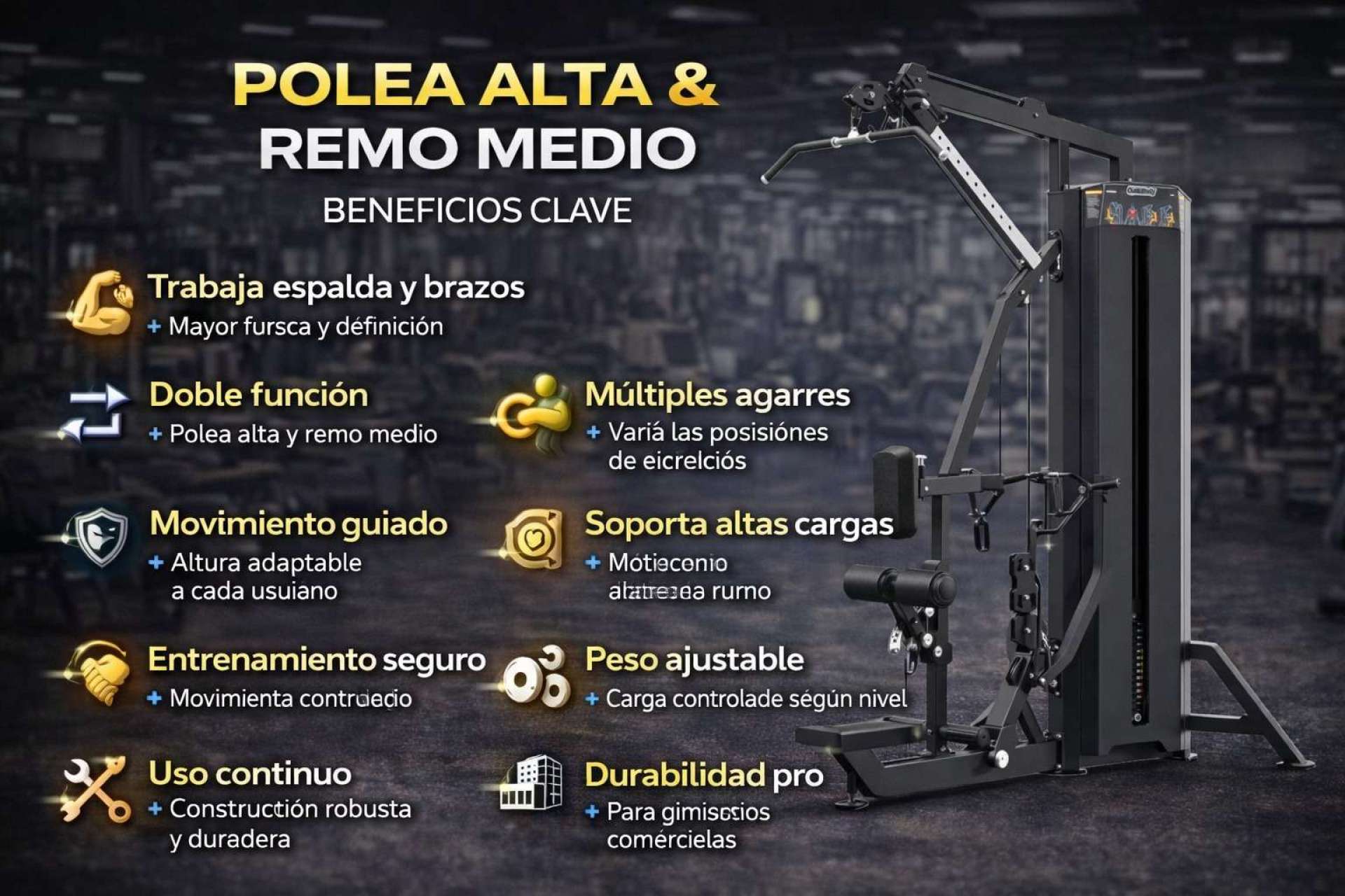 Ideal para gimnasios comerciales y proyectos fitness